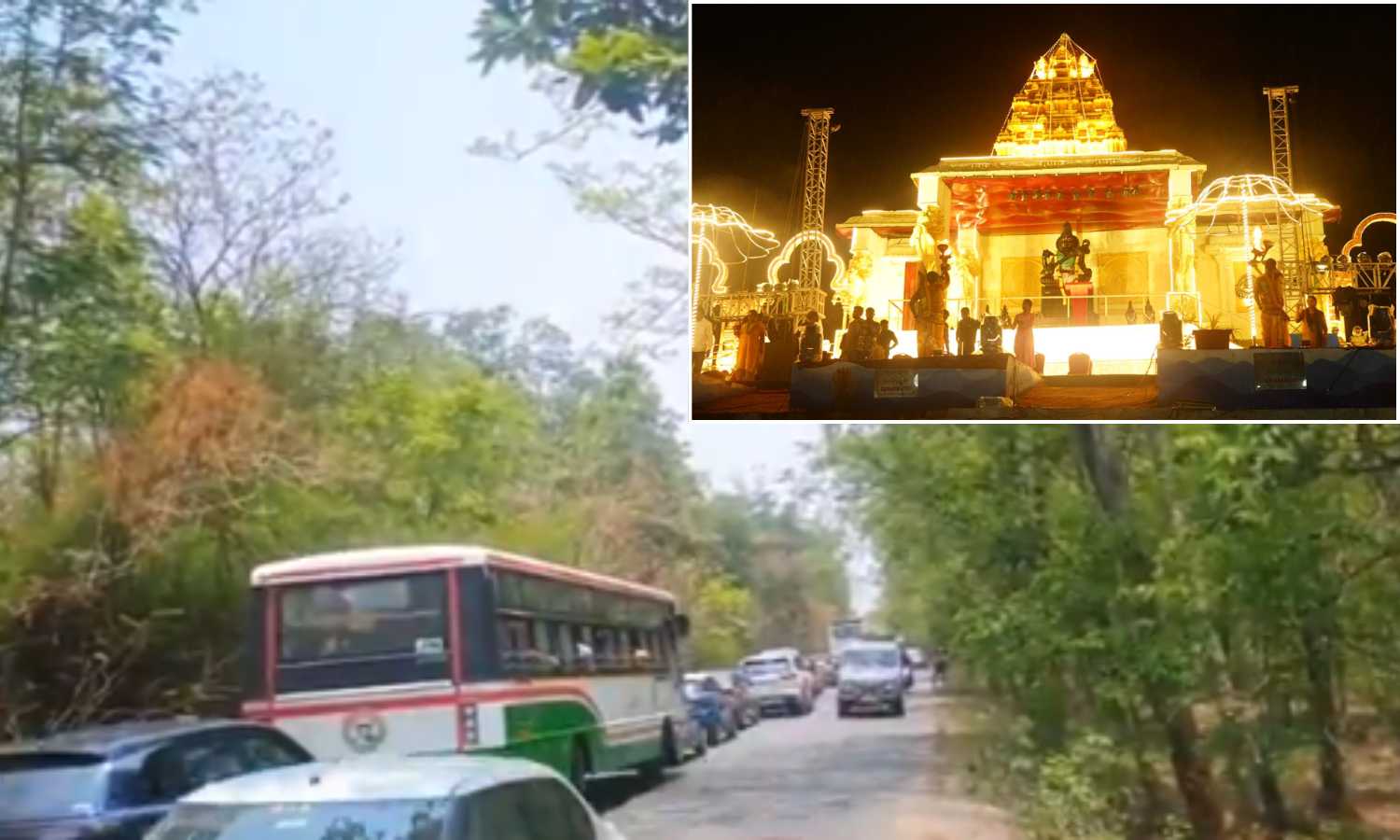 Hyderabad: It was anything but a smooth passage for pilgrims travelling to Kaleshwaram on Sunday, as a 10-kilometre-long traffic jam choked the Bhupalpally stretch and turned the religious rush into a logistical nightmare.