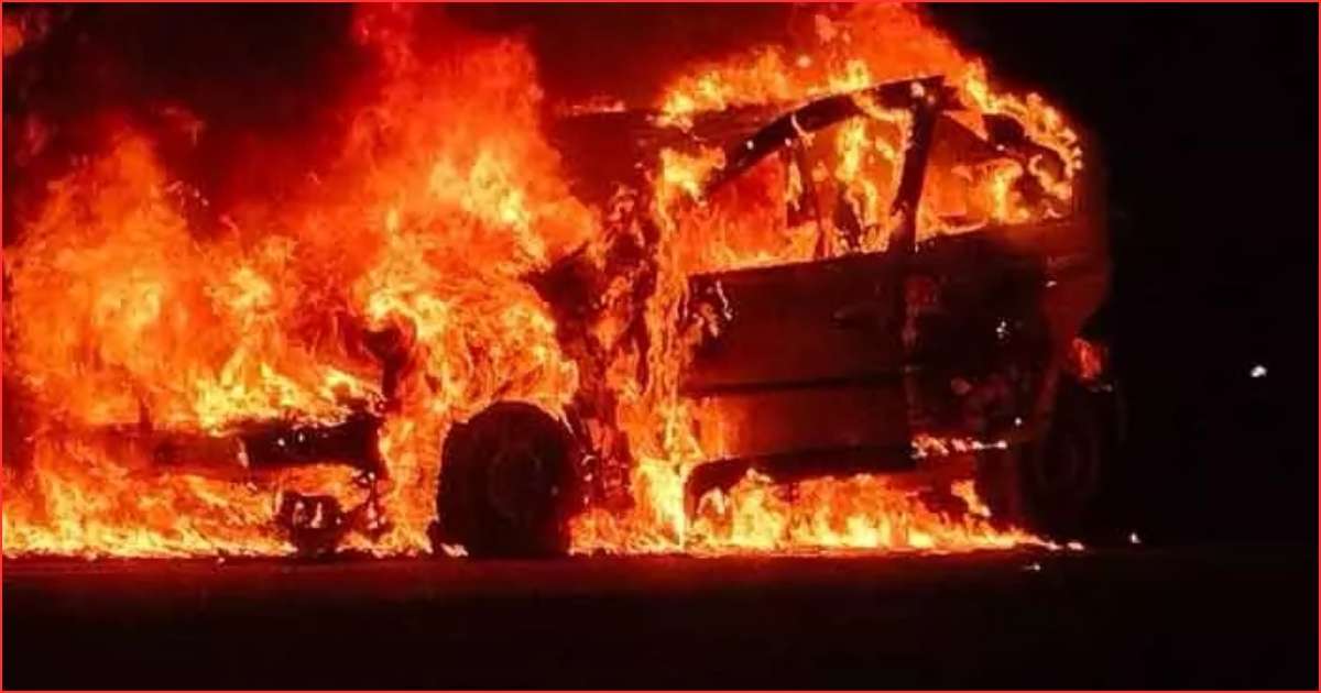 The incident occurred on the Shamshabad–Aramghar stretch near Sidhanti. According to locals and police, the car was heading towards Aramghar when flames suddenly erupted from the engine.