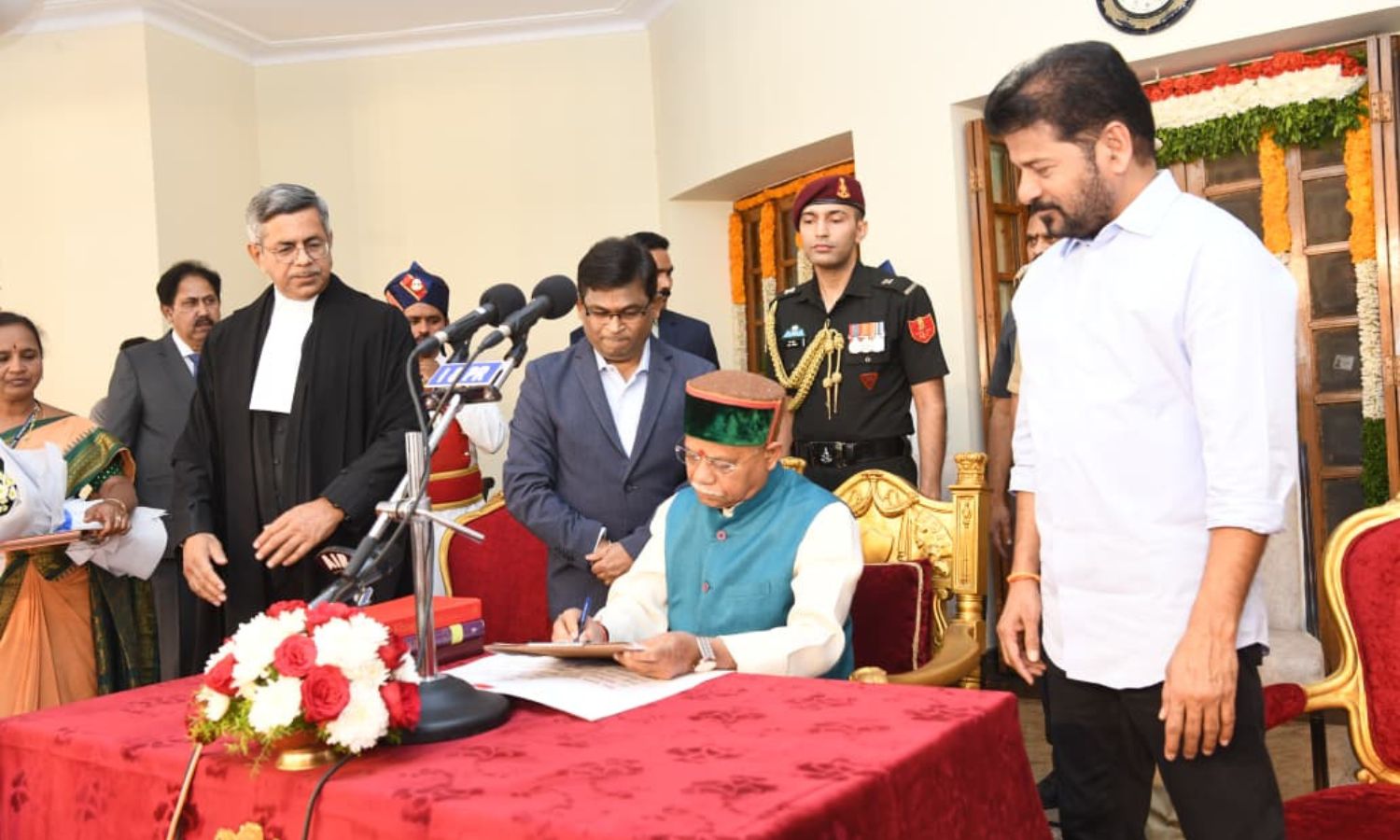 Chief Justice Aparesh Kumar Singh of the Telangana High Court administered the oath of office during the official ceremony.