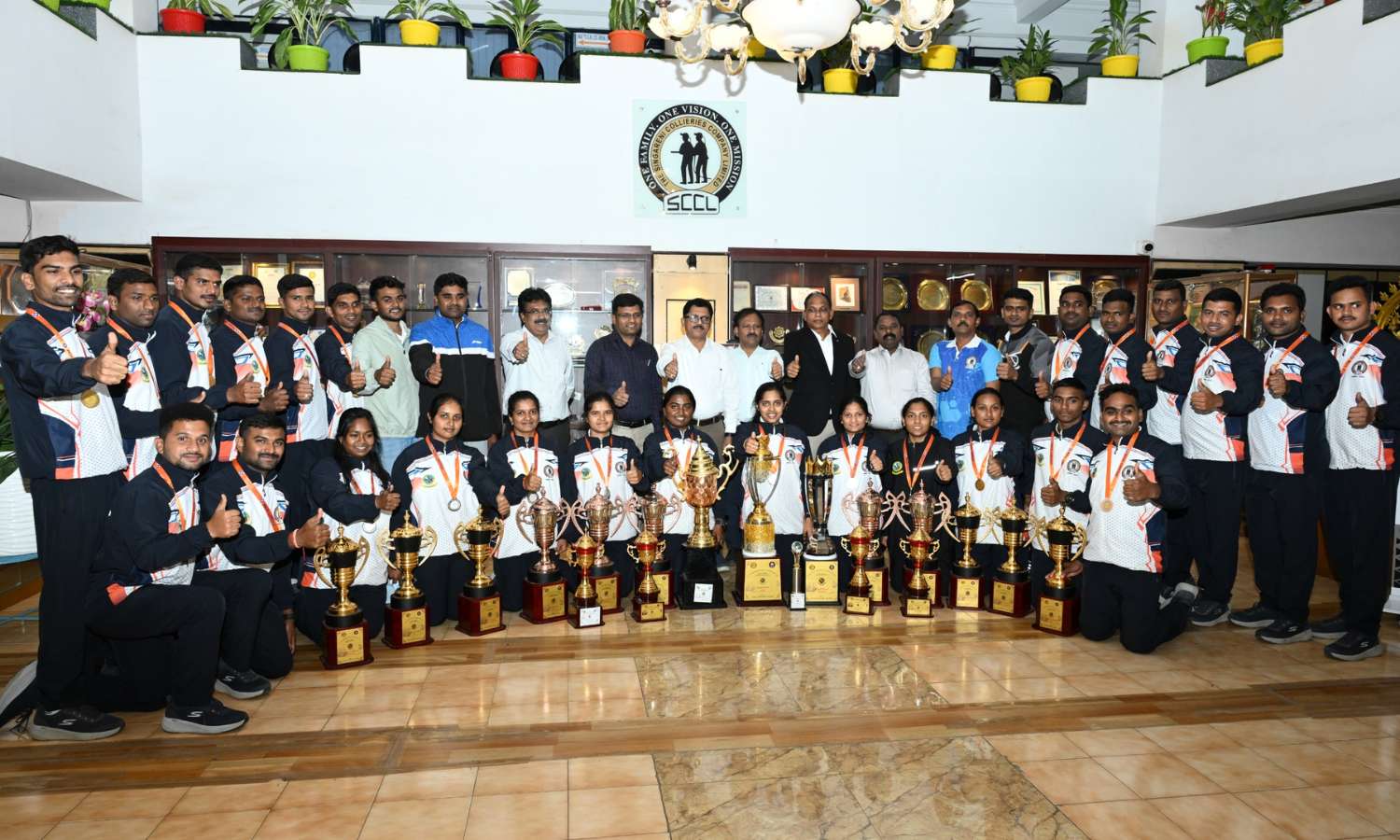 At the felicitation event held at Singareni Bhavan in Hyderabad, Director (P&P) K. Venkateshwarlu said the teams brought national recognition to SCCL. Rescue General Manager Srinivas Reddy detailed the achievements. The men’s team won first prizes in Rescue Relay, Theory, First Aid, and Rescue & Recovery events. They also secured the overall championship. The women’s team won first place in First Aid and several other accolades.
