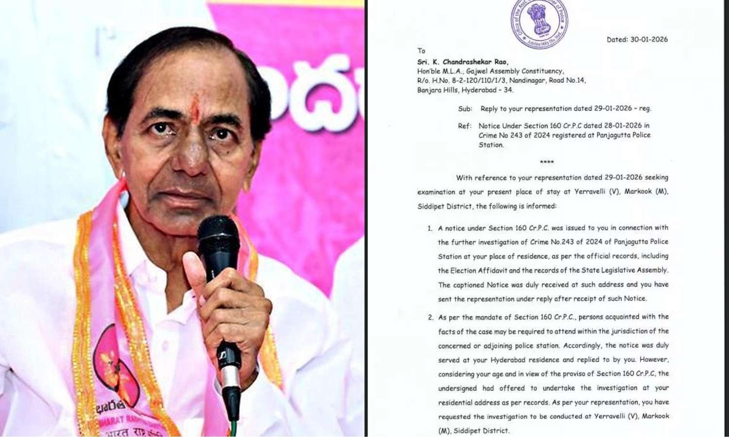SIT officials later told the media that the only address on record is KCR’s Nandinagar residence. They clarified that his request to be questioned at his Erravelli farmhouse could not be accommodated due to the absence of a formal address and logistical constraints in shifting sensitive interrogation equipment for the phone tapping case.