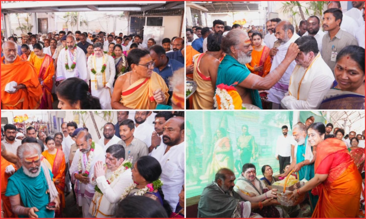 BC Welfare and Transport Minister Ponnam Prabhakar, along with Government Whip and Vemulawada MLA Adi Srinivas, offered silk clothes and talambralu to the deities on behalf of the State government.