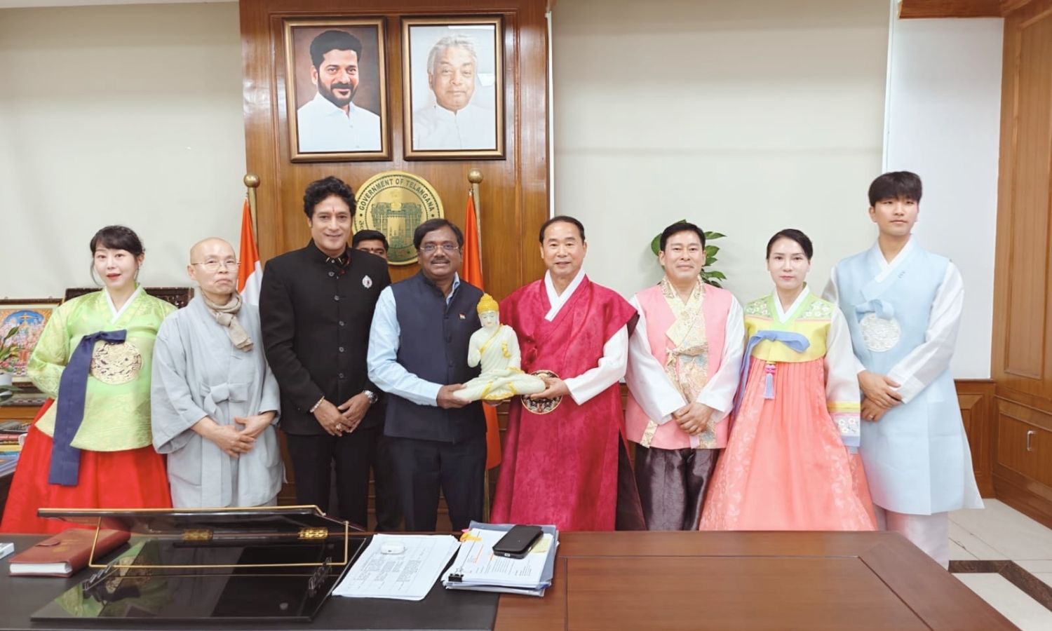 Hyderabad: A South Korean delegation from the Buddhist Council met Labour, Employment and Mines Minister Dr G. Vivek Venkatswamy at the Telangana Secretariat.