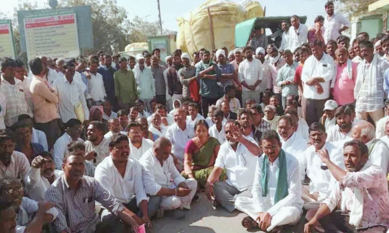 Farmers gathered at the Adilabad market yard and staged a sit-in at the main gate. They blocked cotton vehicles from entering the yard. As a result, cotton procurement came to a halt.