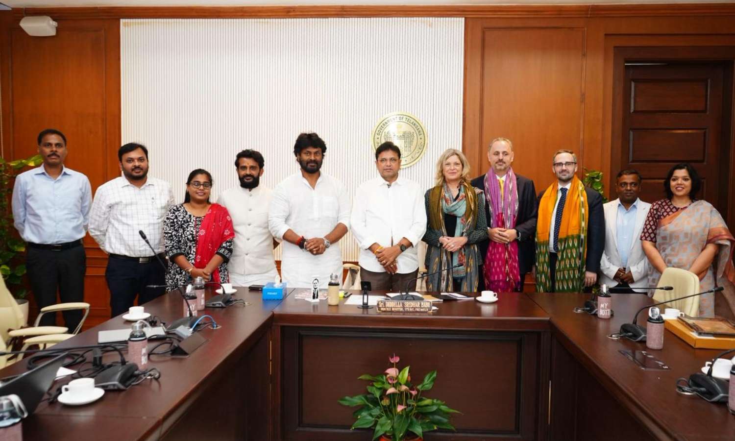 The Minister held discussions with representatives from Germany’s Friedrich-Ebert-Stiftung (FES) Foundation at the Secretariat on Thursday. Delegates included Dr. Sabine Fandrych, Mirco Gunther, and Christoph Mohr. During the meeting, Sridhar Babu showcased Telangana’s industry-friendly policies, streamlined business procedures, and ongoing welfare initiatives.