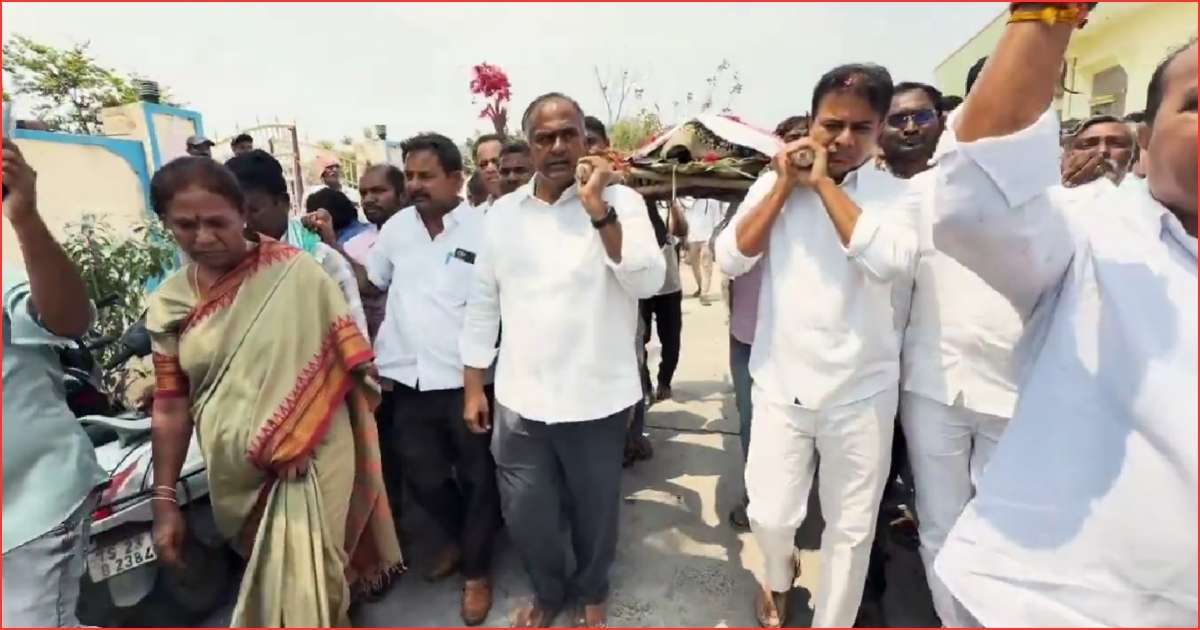Several leaders and local dignitaries attended her final rites. Among them were Vemulawada constituency in-charge Chalmeda Laxminarsimha Rao, former ZP chairperson Tula Uma, and BRS leader Enugu Manohar Reddy.