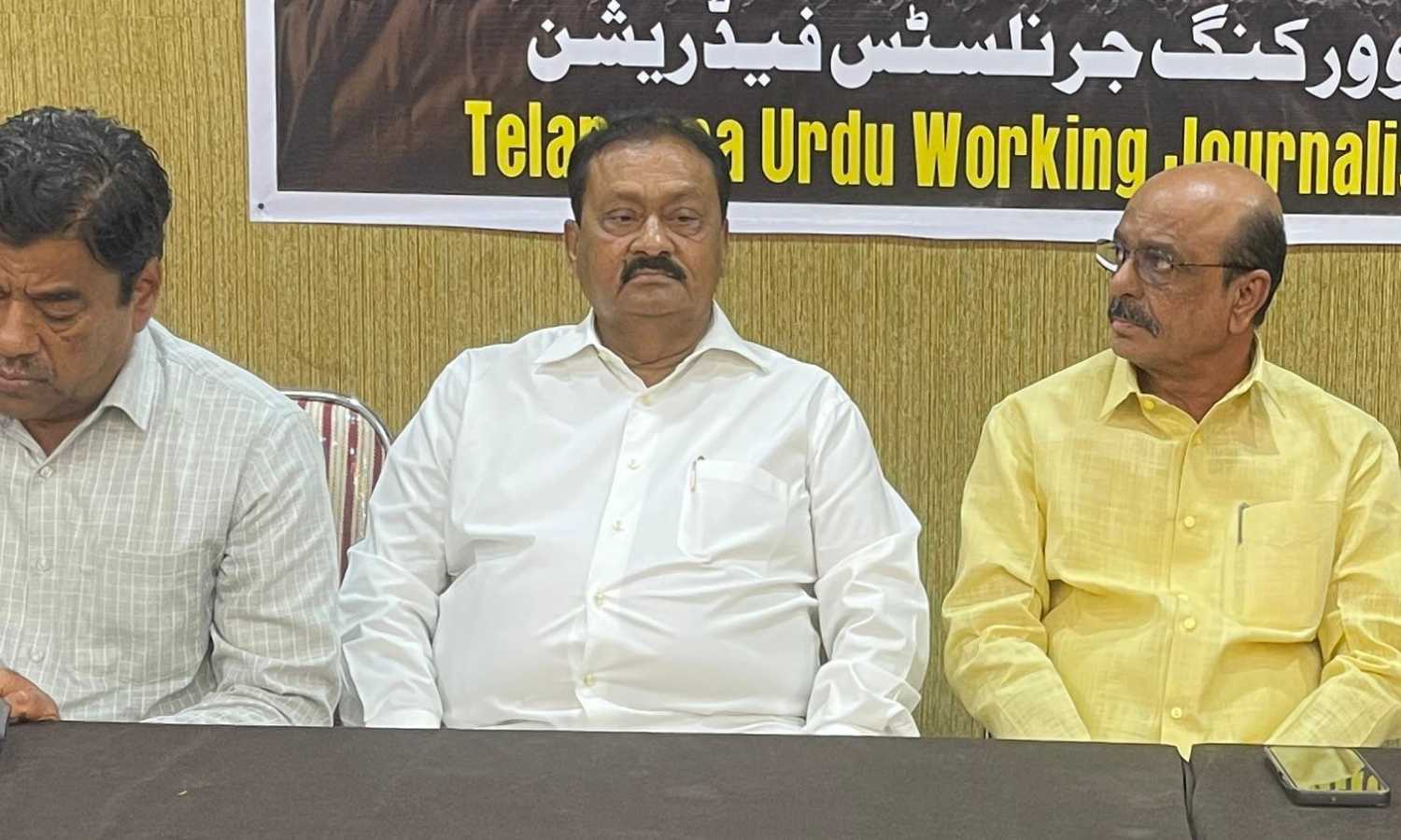 The meeting, held at Media Plus Auditorium, was organised by the Telangana Urdu Working Journalists Federation. Shabbir Ali offered condolences on behalf of the state and recognised the contributions of both journalists to Urdu media and public discourse.