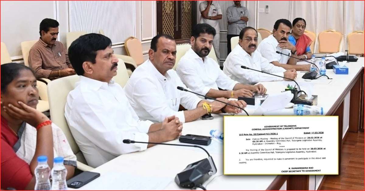 Hyderabad: The Telangana Cabinet meeting will be held on March 20, 2026, at 9:30 AM at the Assembly Committee Hall in the Telangana Legislative Assembly.