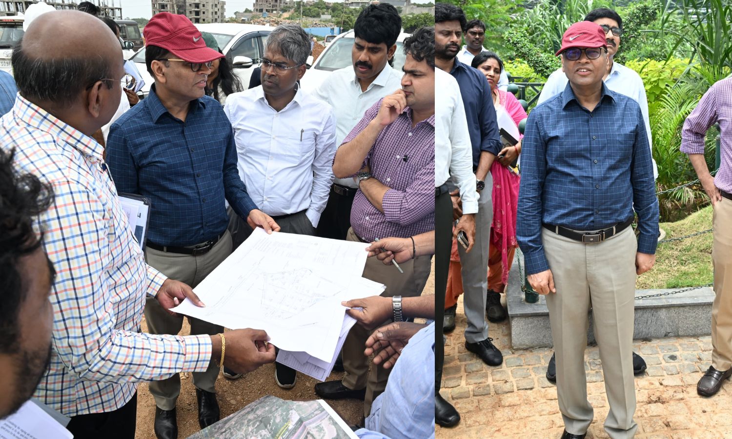 He later visited the under-construction HMDA Eco Park at Kotwalguda, where he noted the variety of exotic birds and garden landscaping. The team also inspected government lands in Budvel, Rajendranagar.