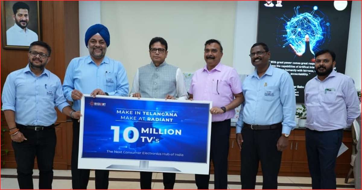The Minister made the remarks while interacting with industry representatives at the Dr. B.R. Ambedkar Telangana Secretariat. During the event, he congratulated Radiant Appliances and Electronics Private Limited for manufacturing 10 million television units.