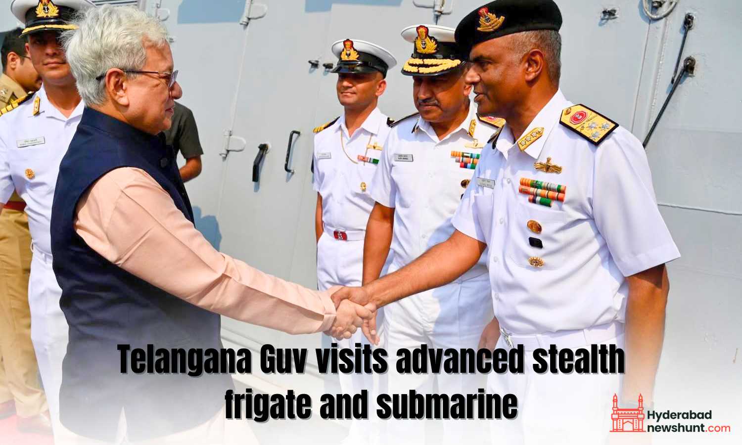 Hyderabad: Telangana Guv Jishnu Dev Varma visited frontline platforms of the Indian Navy at Visakhapatnam on Saturday. During the visit, he toured the advanced stealth frigate INS Himgiri and a Kalvari-class submarine.