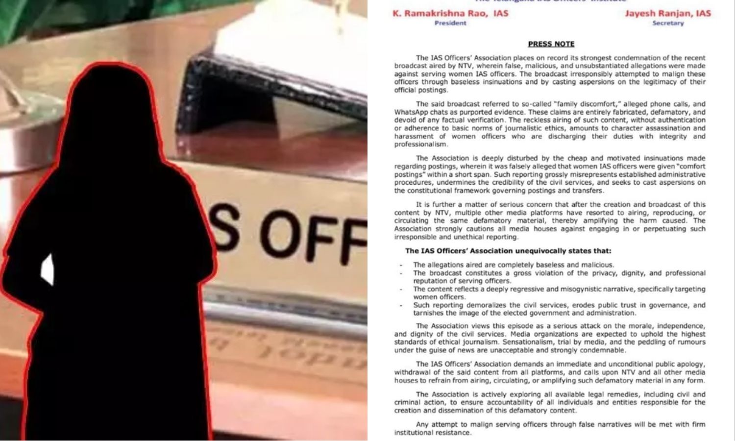 Finally, the Telangana IAS Officers Association warned of legal action. It said individuals and organisations spreading defamatory content would face consequences.