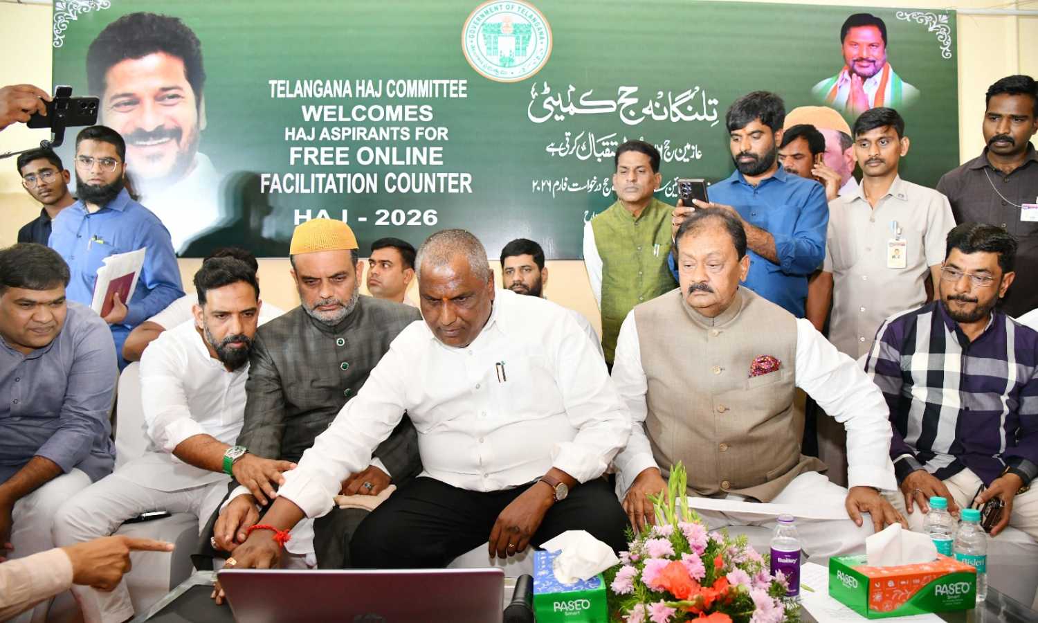 Among those present at the launch were Government Advisor Mohammad Ali Shabbir; AIMIM MLA Jaffer Hussain Meraj; TGMRIES President Faheem Qureshi; Congress Vice President Mujahid Alam Khan; former corporator Wajid Hussain; Haj Committee Executive Officer Sajjad Ali; Assistant EO Irfan Sharif; and active committee members Mujib and Laiq.
