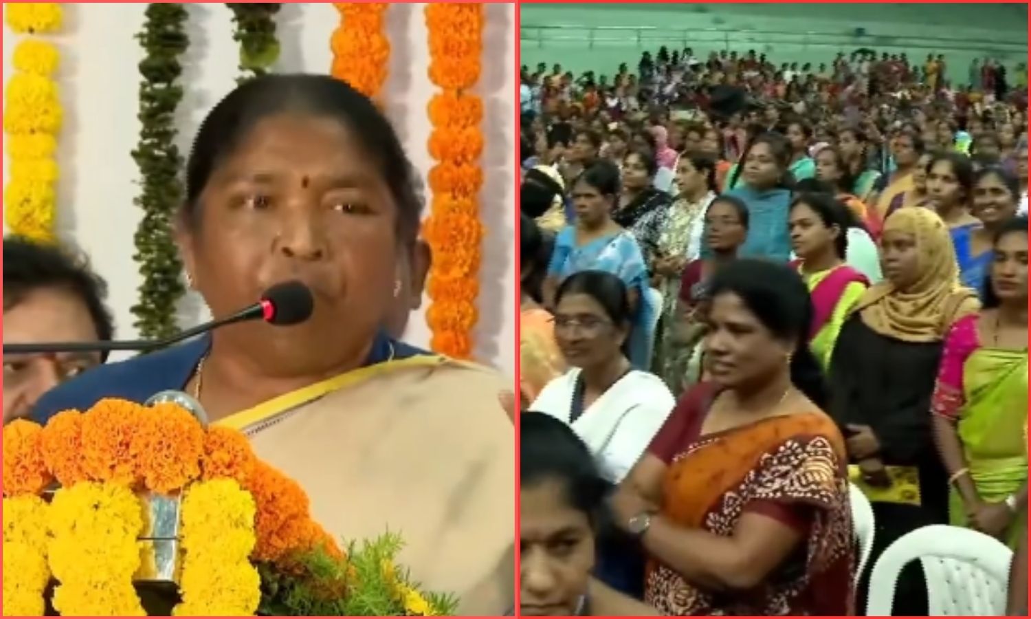 The minister addressed the Indira Mahila Shakti programme at Kotla Vijayabhaskar Reddy Stadium in Yousufguda. She said women earlier had to depend on men for money. However, the Congress government introduced special schemes to ensure their economic empowerment.