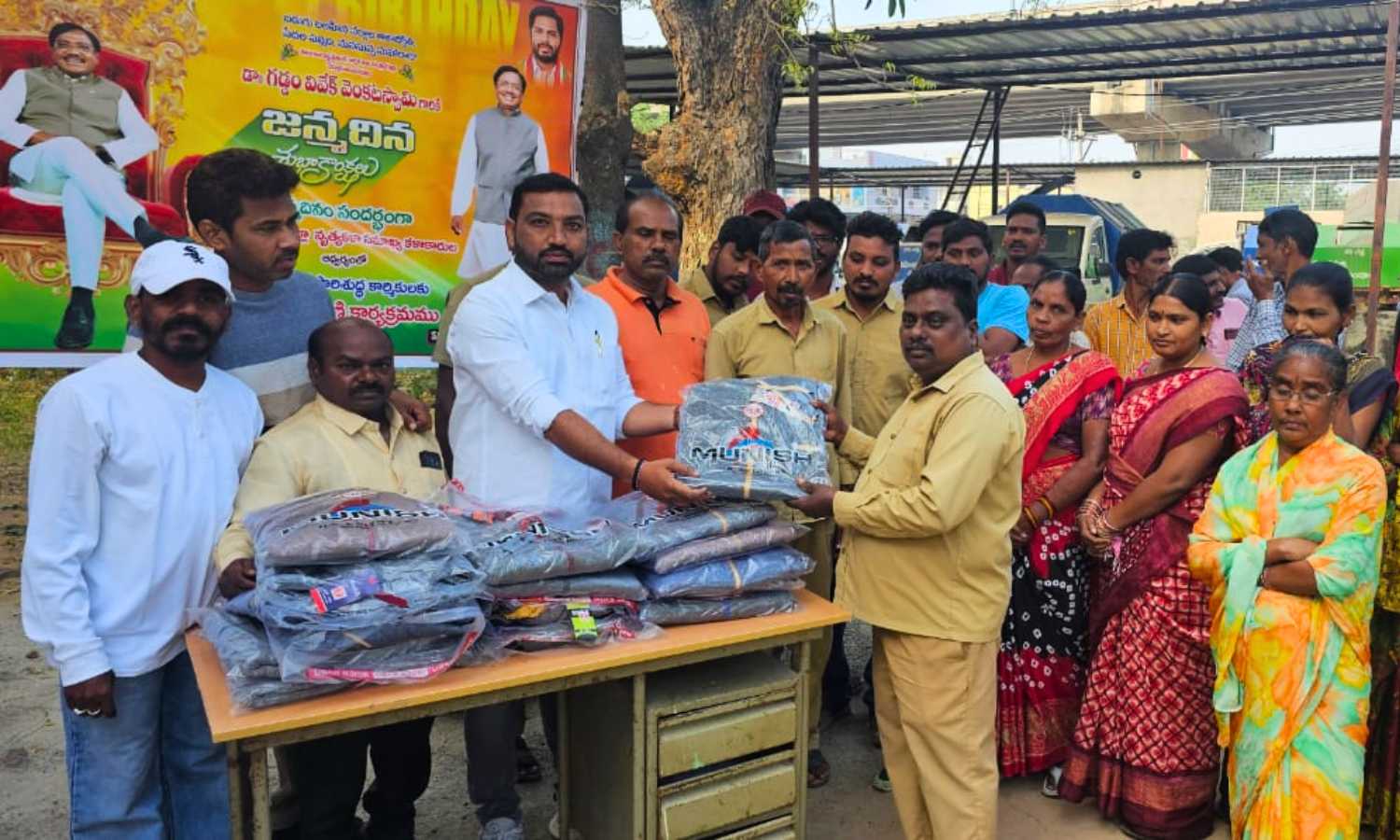In Ramagundam, the Lions Club held a food distribution event. Meanwhile, artists in Mandamarri offered sweaters to sanitation workers. Members of the Auto Union also gathered to thank Dr. Vivek for his support toward labour rights and vulnerable communities.