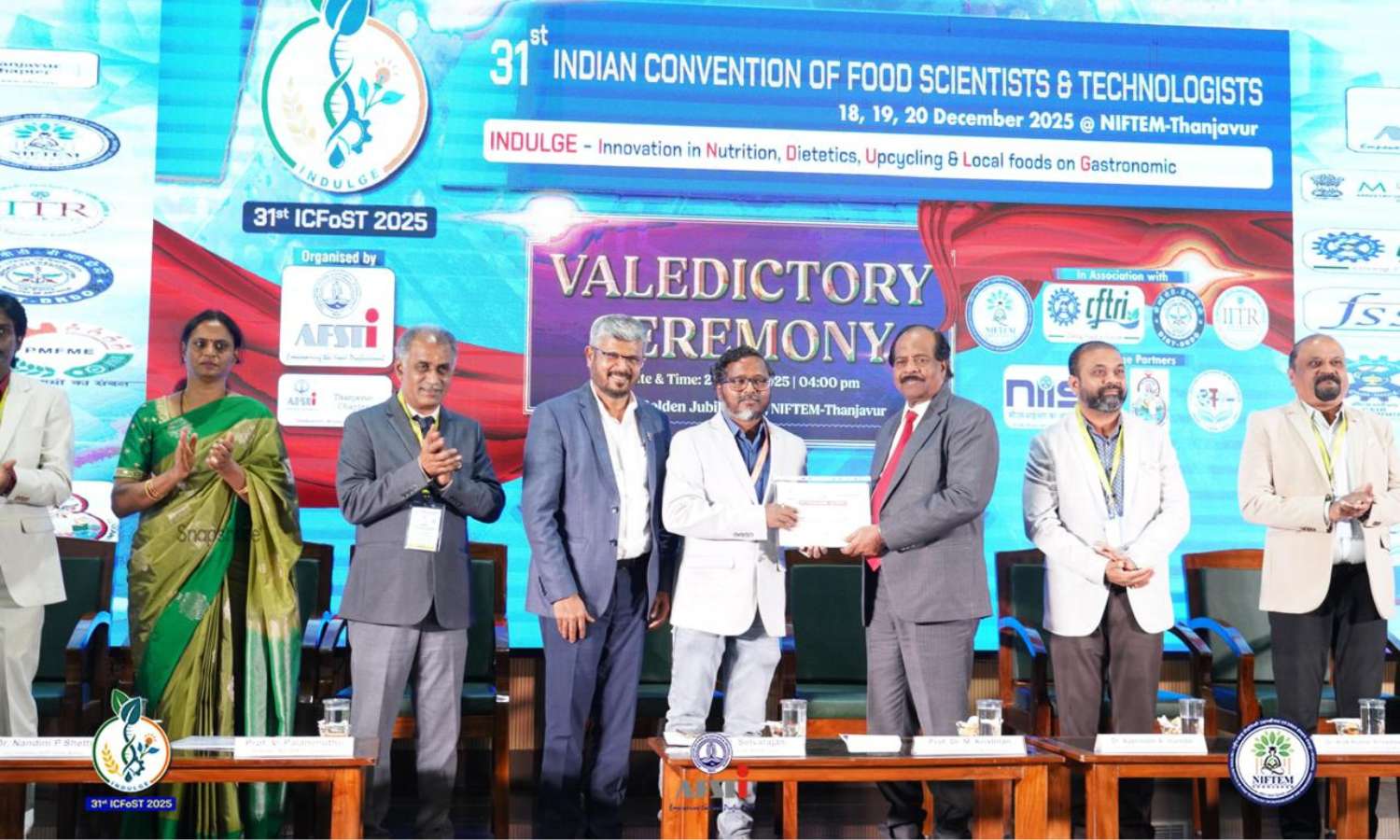 He earned the award during the 31st India Convention of Food Scientists and Technologists (ICFoST), held at NIFTEM-T from December 18 to 20. The recognition highlighted his efforts in creating nutrient-rich food films using local vegetables.