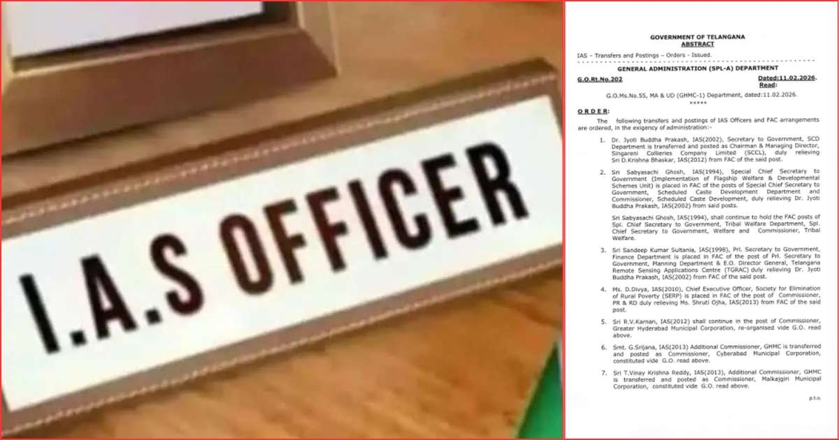 Hyderabad: The Telangana government has transferred ten IAS officers in a major administrative reshuffle. Jyoti Buddha Prakash will now serve as the new Chairman and Managing Director (CMD) of Singareni Collieries Company Limited (SCCL).
