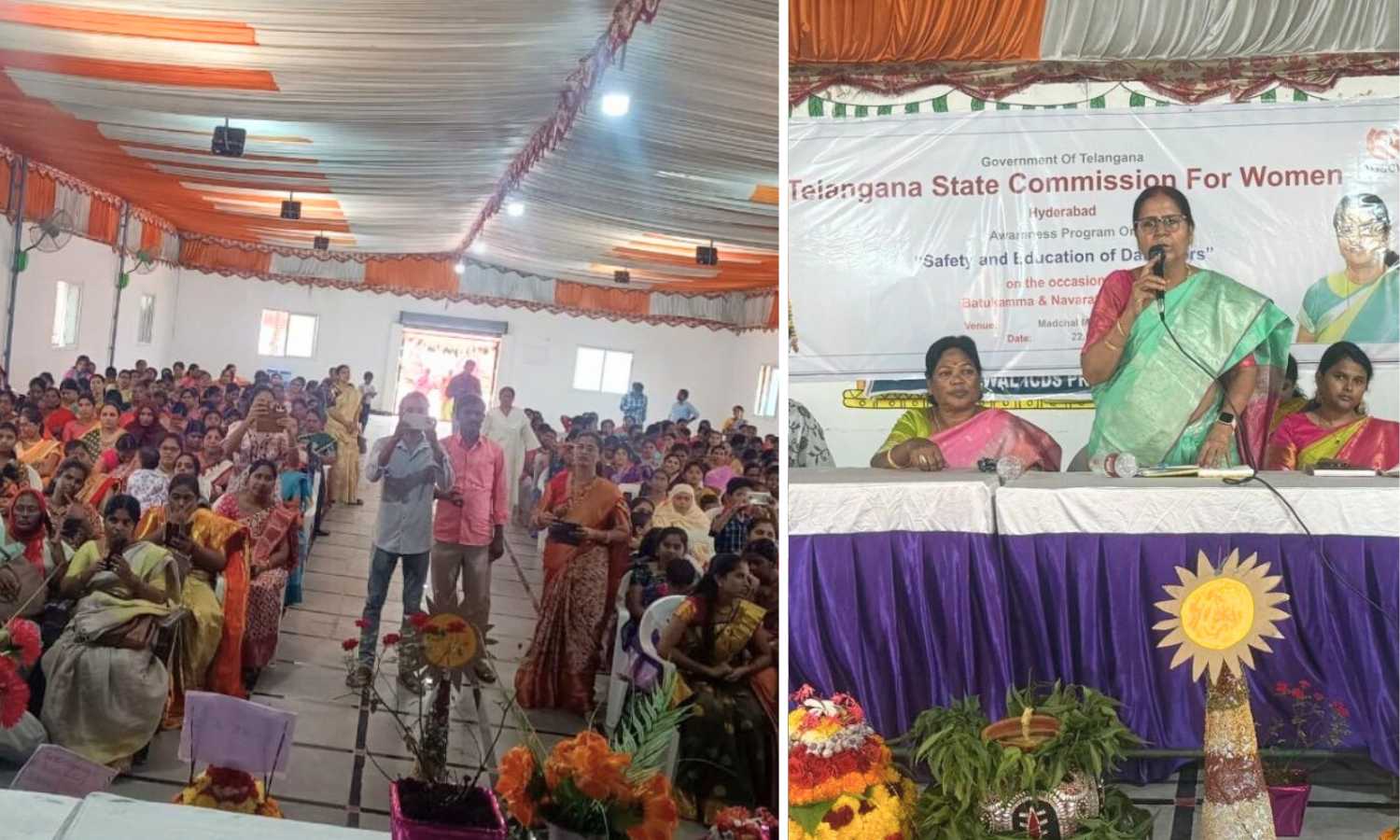 Hyderabad: The Telangana State Women’s Commission organised an awareness programme titled “Safety of Daughters – Education of Daughters” at Annojiguda in Ghatkesar mandal of Medchal district. The initiative was held at the direction of commission chairperson Nerella Sharada in connection with Navaratri and Bathukamma celebrations.