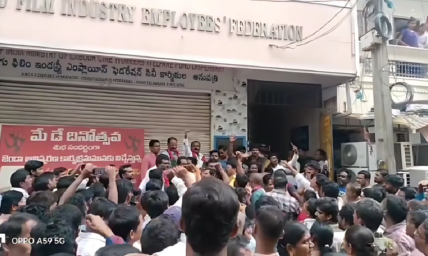 Hyderabad: The Telugu Film Employees Federation (TFIEF) began a strike on Monday, halting all film and web series shootings across Telugu states and beyond, demanding a 30% wage hike for film crew members.