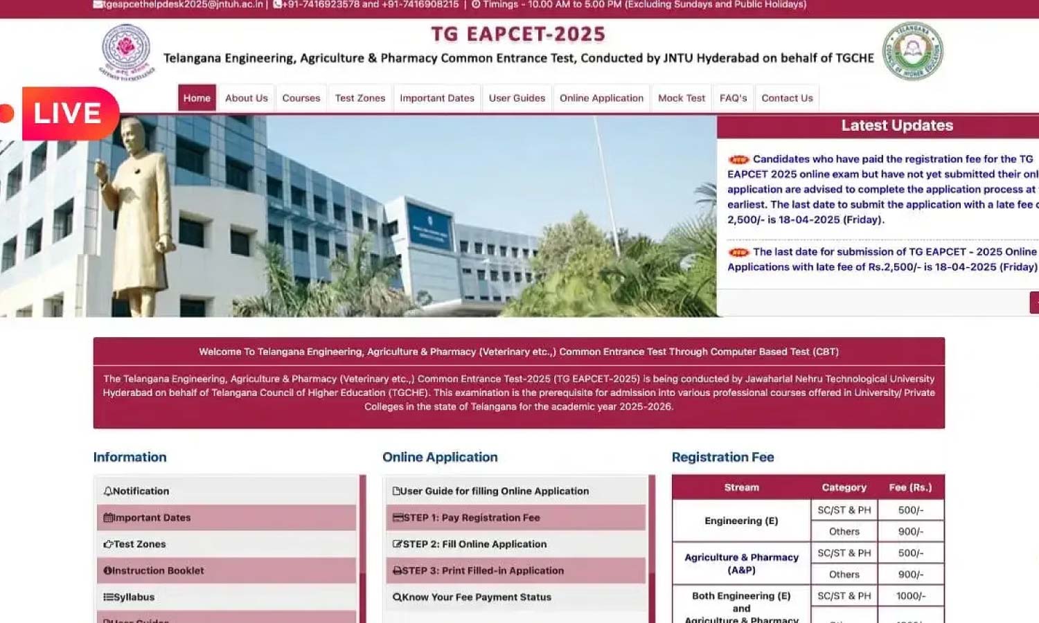 HYDERABAD: The Telangana State Council of Higher Education (TSCHE) has announced the hall ticket release dates and examination schedule for the Telangana Engineering, Agriculture and Pharmacy Common Entrance Test (TGEAPCET) 2025.