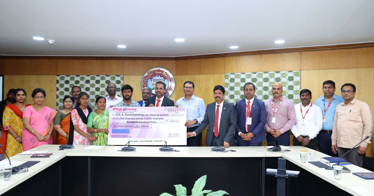 TGSRTC vice-chairman and managing director Y. Nagireddy, along with Union Bank of India Executive Director Amresh Prasad, handed over the cheques at Bus Bhavan. Senior officials from both TGSRTC and UBI were also present.