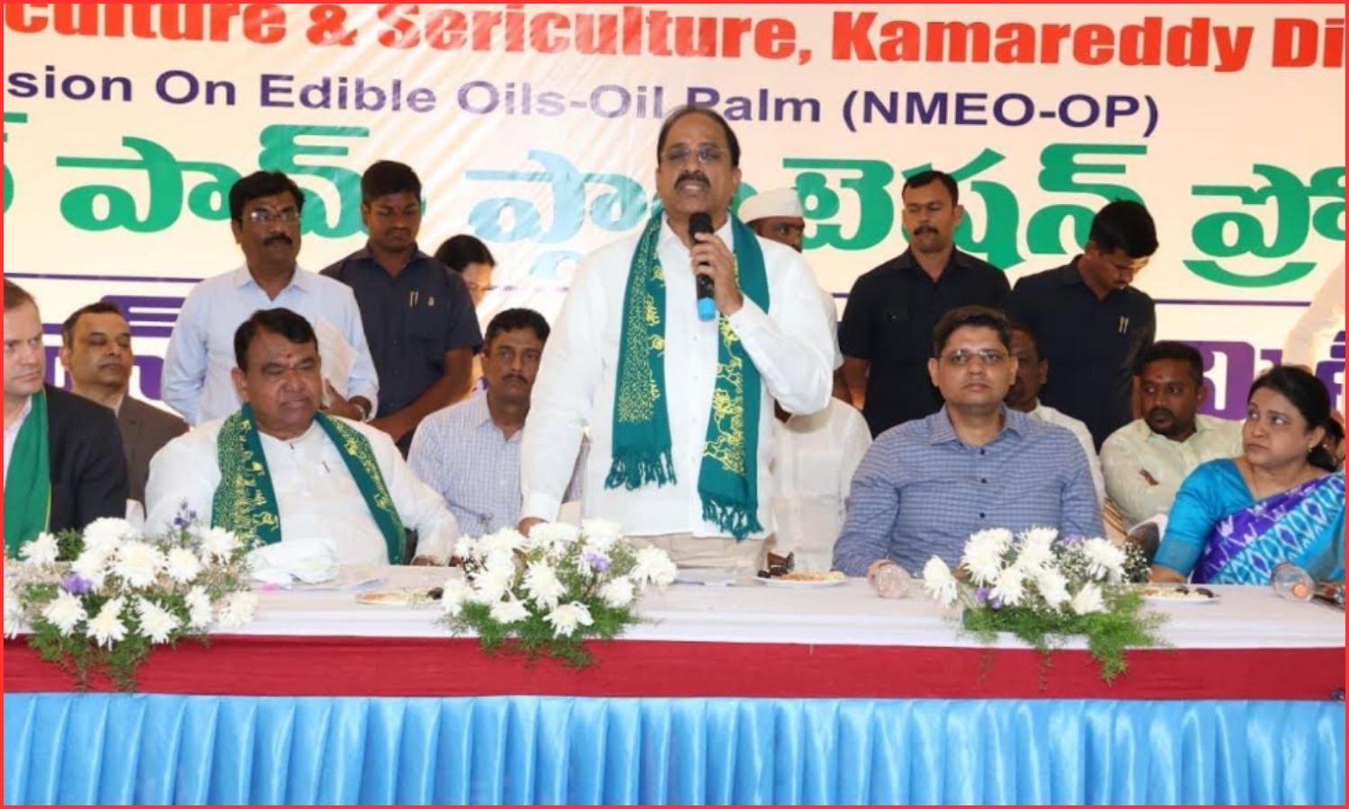 Agriculture Advisor and Banswada MLA Pocharam Srinivas Reddy called upon Kamareddy farmers to match the progress of Khammam and Kothagudem districts in oil palm cultivation.