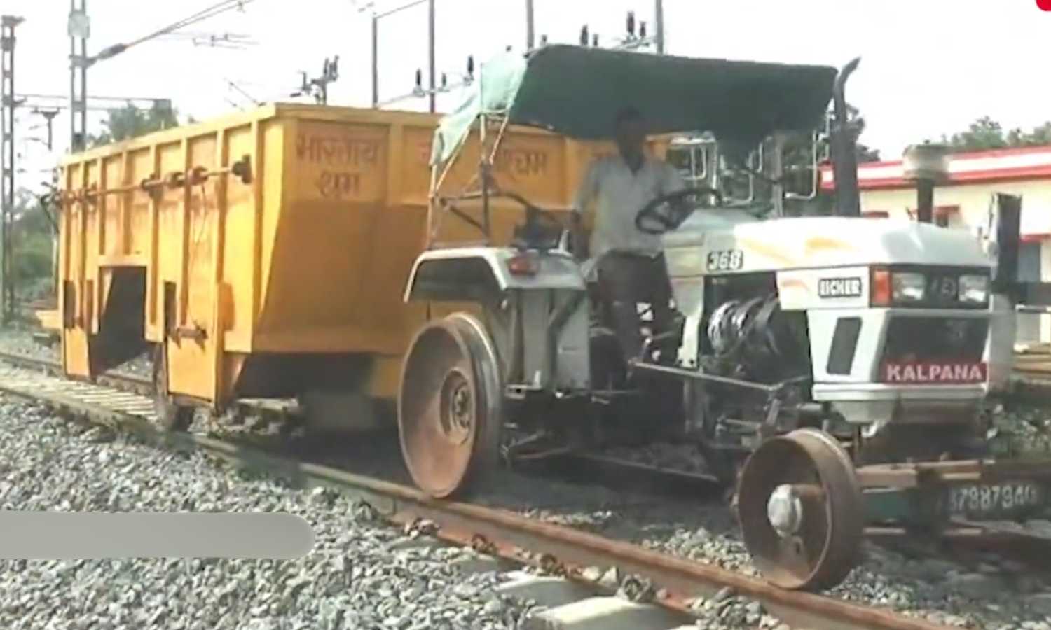 Hyderabad: A tractor modified with steel wheels to run on railway tracks surprised locals at Mahabubabad railway station during ongoing construction work.