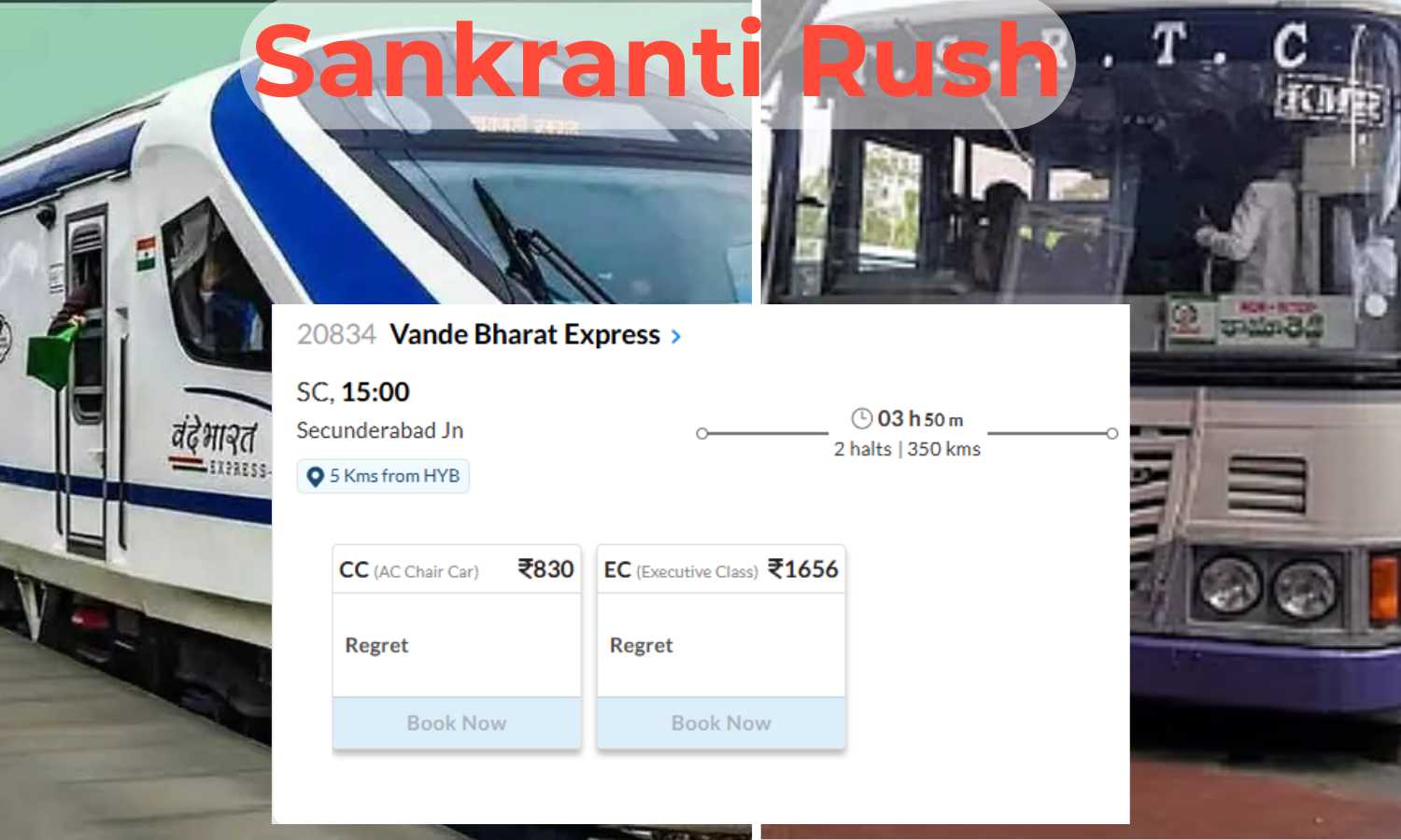 Hyderabad: Travel bookings for Makar Sankranti have surged, with long-distance trains and buses from Hyderabad nearly sold out. Many popular trains are already showing “Regret” status, meaning no seats or even waitlist options are available.