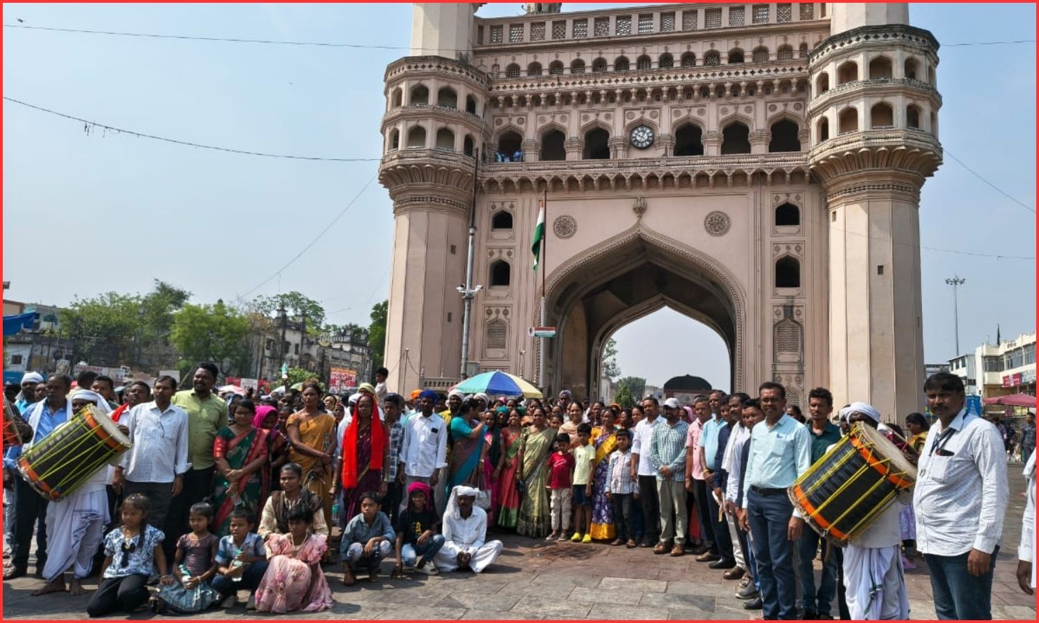 Hyderabad: A tribal group Charminar visit drew attention as visitors arrived at the historic monument and received a traditional welcome from tourism officials.