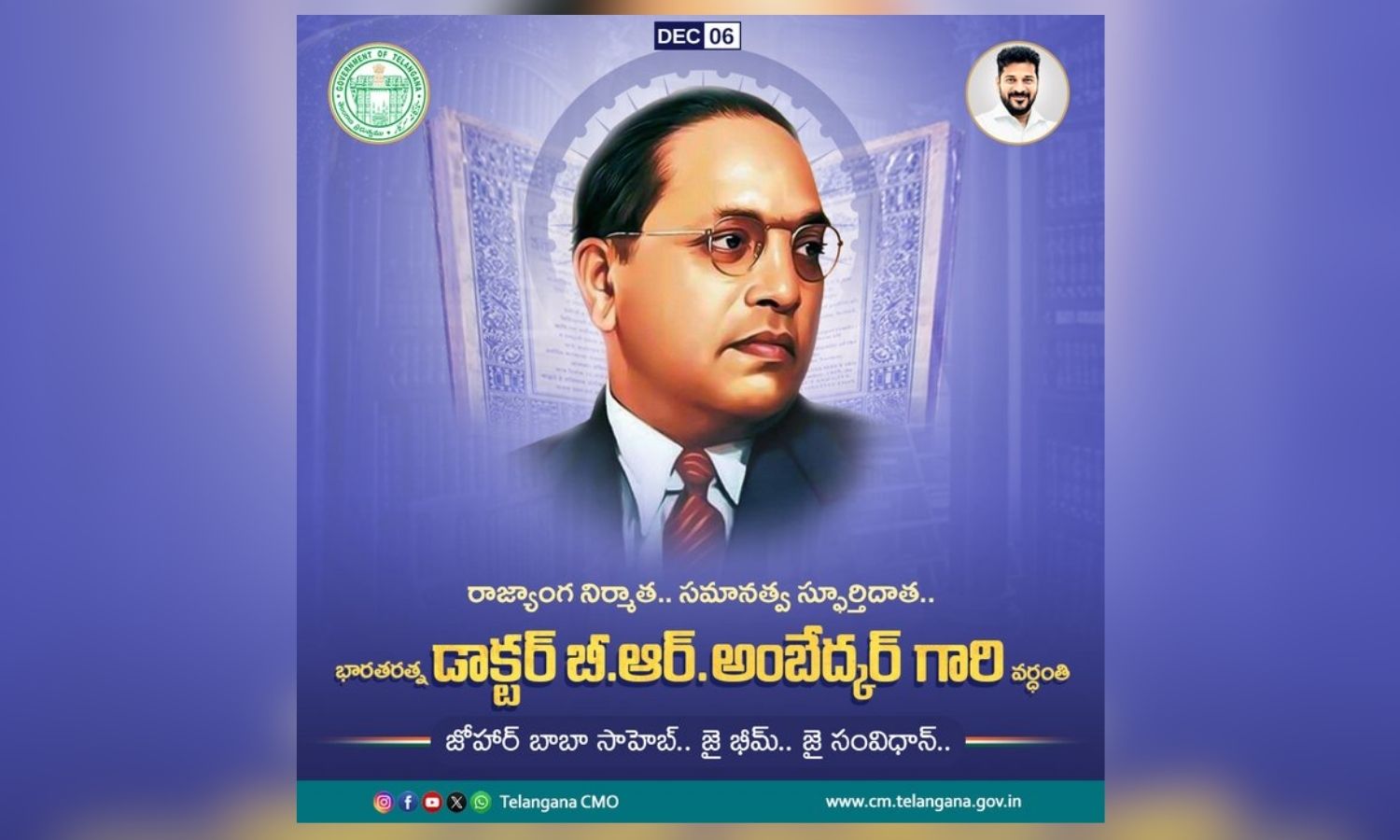 Hyderabad: Chief Minister A. Revanth Reddy paid homage to Dr B. R. Ambedkar on his death anniversary, and he recalled the leader’s role in shaping India’s constitutional foundations. He said Ambedkar’s work continued to guide public life and strengthen the principles of justice and equality.