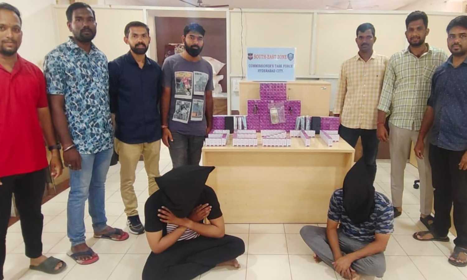 Hyderabad: Commissioner’s Task Force, South East Zone, apprehended two individuals for illegally selling Mephentermine Sulphate injections and seized 423 vials along with two two-wheelers, two mobile phones, and ₹9,430 in cash.