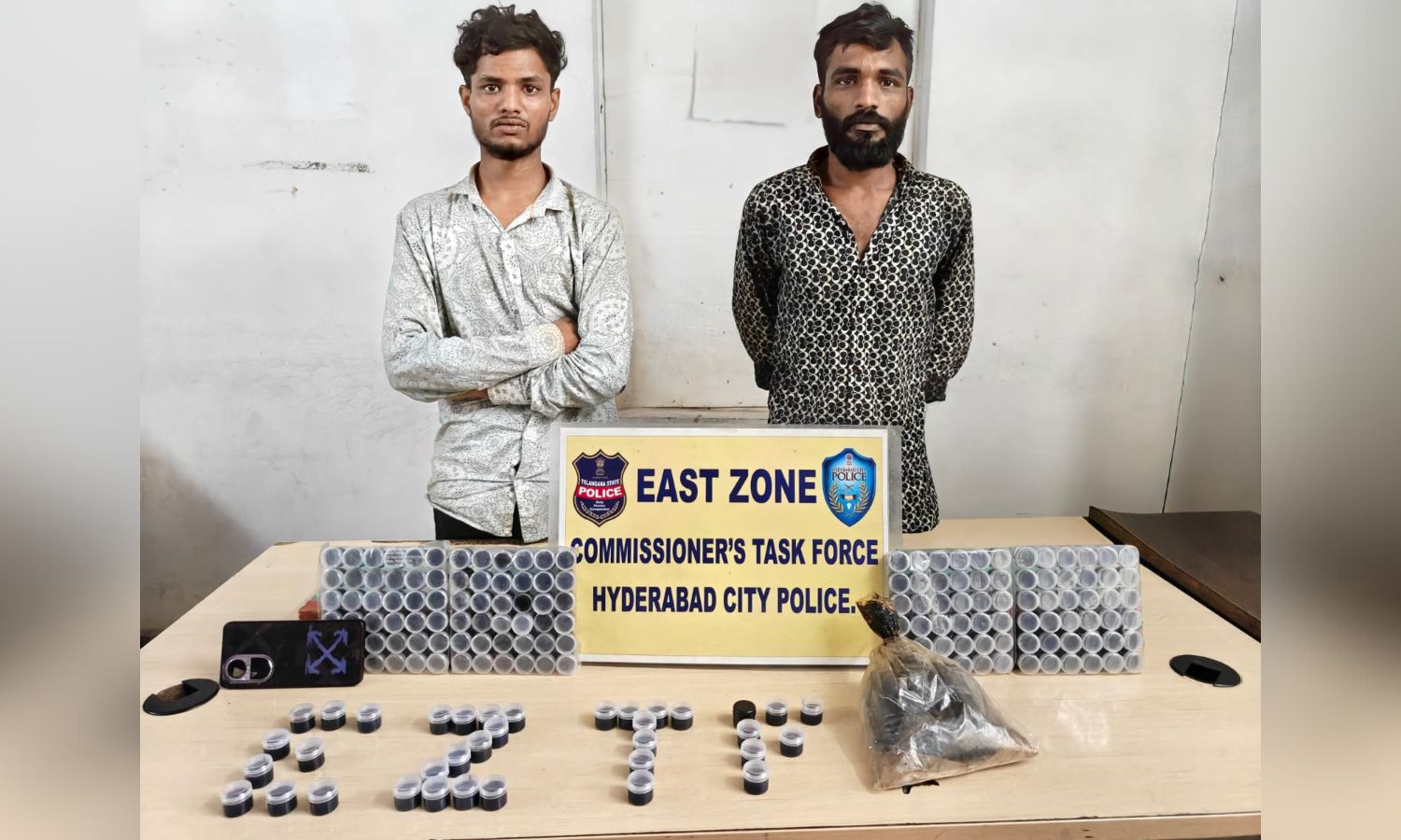 The accused are fruit vendor Sahoo Sonu (31) of Anjaiah Nagar, Old Bowenpally, and Flipkart delivery boy Bandari Ravi Teja (20) of LB Nagar. Officers caught them near Gate-II of ICRISAT Phase-2, Krishna Nagar, Secunderabad, on August 11. They also seized a mobile phone from the duo.