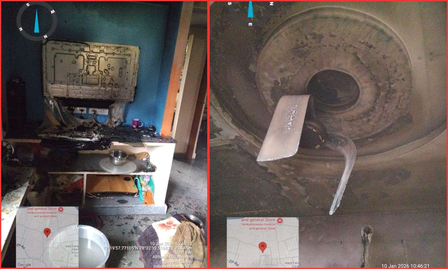 According to the complaint filed by K. Venkatesh, a resident of Srinagar Colony, Hasthinapuram, the fire broke out around 10:42 a.m. while water was being boiled on a gas stove for bathing purposes. Several relatives had gathered at the house for a family event. As the fire spread rapidly, most family members managed to escape. However, two women were trapped inside.