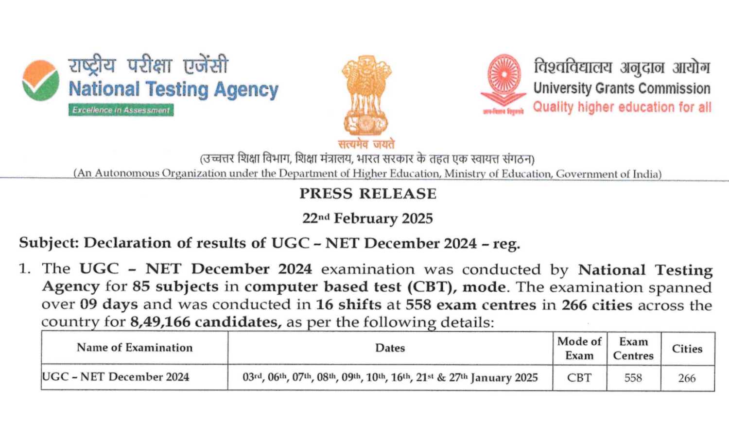 NEW DELHI: The National Testing Agency (NTA) has officially declared the UGC NET Result 2024. Candidates who appeared for the exam can now check their scores on the official NTA website.