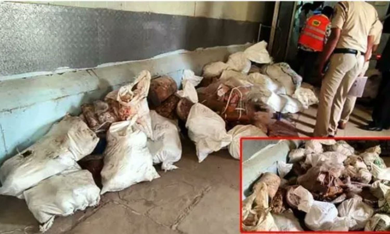 Hyderabad: Balapur Police seized 1,150 kg of unhygienic meat during a raid on a cold storage unit supplying to hotels and restaurants.