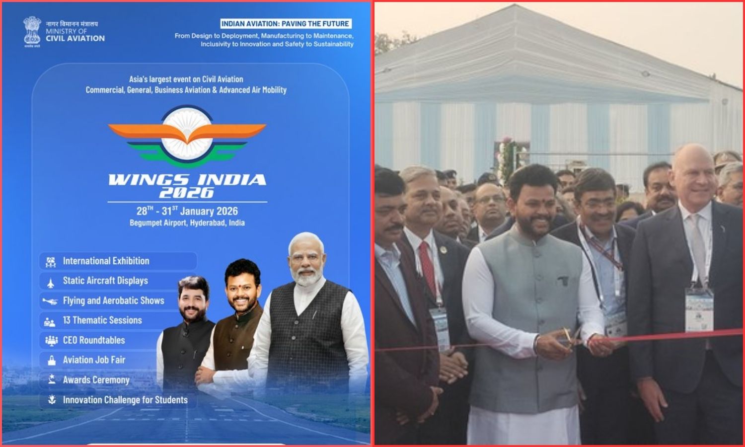 Accordingly, officials said the event aims to serve as a single platform for policymakers, airline heads, investors, startups, training institutes and technology providers. The theme of Wings India 2026 is Indian Aviation: Paving the Future.