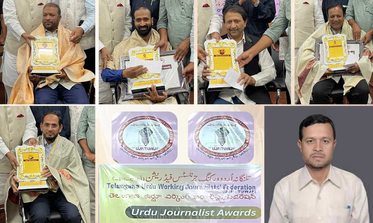 The gathering, attended by leading journalists and officials, celebrated the unwavering commitment of Urdu media professionals to journalistic integrity and public engagement. Among the major honours, the Faiz Mohammed Asghar Award was jointly awarded to Iftekhar Ali Wajid from Etemaad Daily and Yasirullah Shakeel of 4TV. The Tabassum Fareedi Award went to Shahid Ahmed Tawakkal from Adilabad and Waheed Gulshan. Veteran journalist Naeem Wajahat from Siasat Daily and Mohammed Asad of Karimnagar were recipients of the Habib Ali Al-Jilani Award.