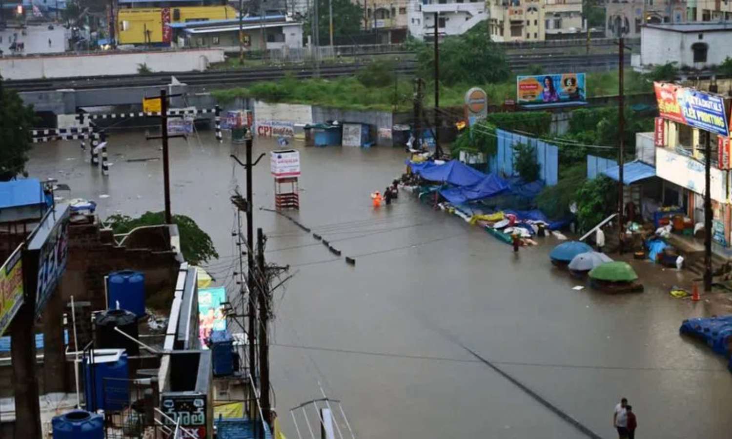 Although the rain stopped, Warangal, Hanumakonda, and Kazipet stayed under floodwater. In many colonies, water filled houses, forcing residents to wade through waist-high levels. Roads in Hanumakonda looked like rivers. Warangal Railway Station remained fully waterlogged.