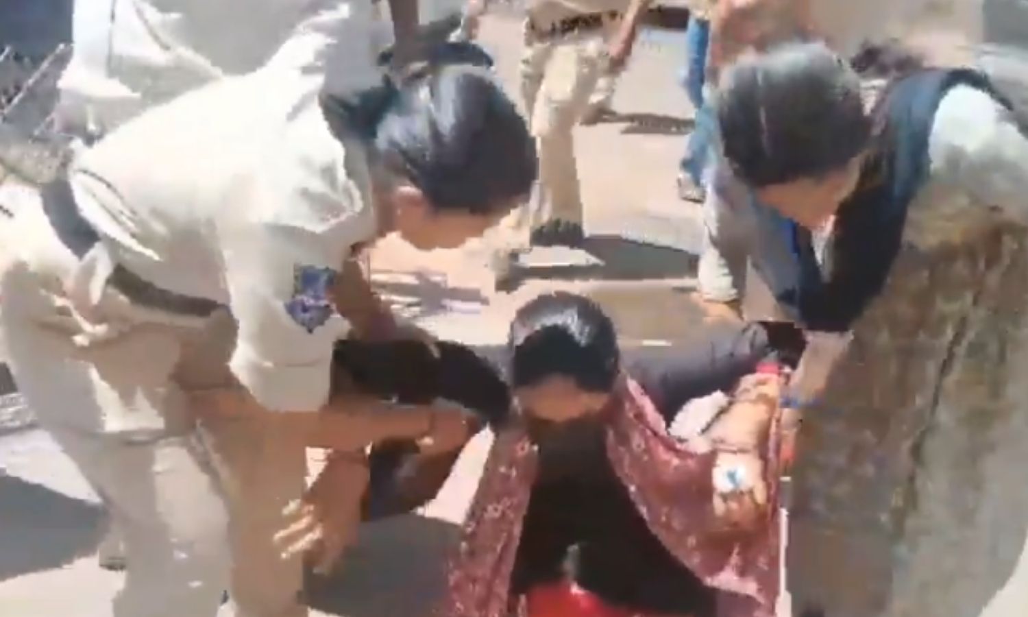 Police immediately snatched the petrol bottle from her and prevented the attempt. Consequently, they averted a major tragedy at the location.