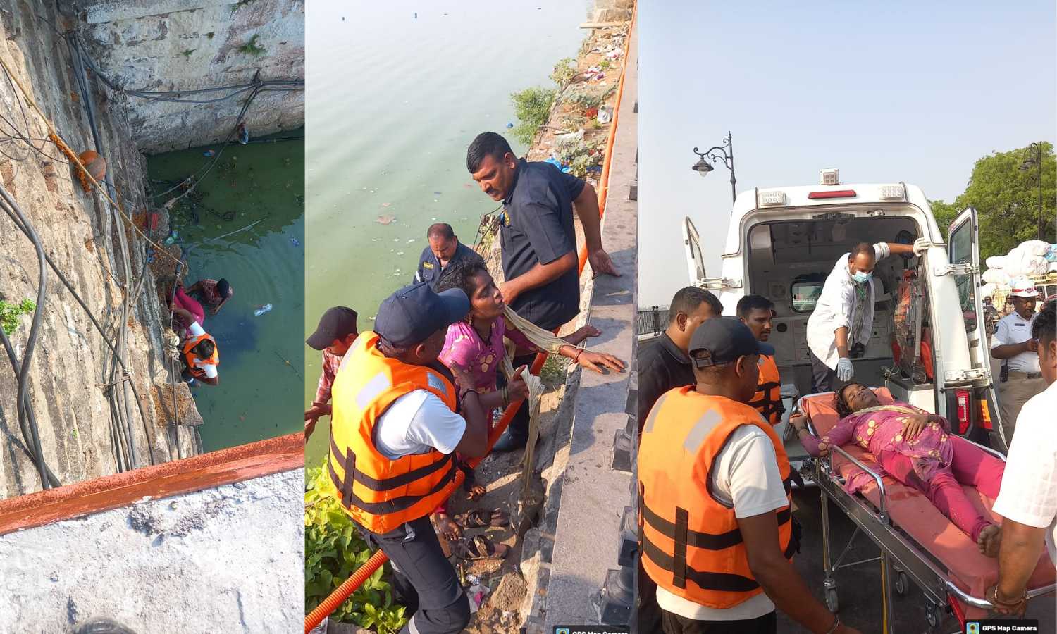 HYDERABAD: A woman attempted suicide by jumping into Hussain Sagar Lake in the heart of Hyderabad on Tuesday but was rescued in time by the Hyderabad Disaster Response and Asset Protection Agency (HYDRAA) team.