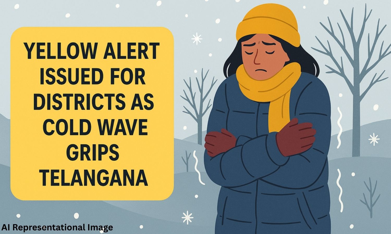 Hyderabad also saw a clear dip in temperatures. Begumpet officials said similar conditions would last for three to four more days. With the cold wave strengthening, the IMD issued a yellow alert for Adilabad, Kumram Bheem Asifabad, Mancherial, Nirmal, Sangareddy, Medak and Kamareddy. It forecast minimum temperatures near 13°C in several regions.