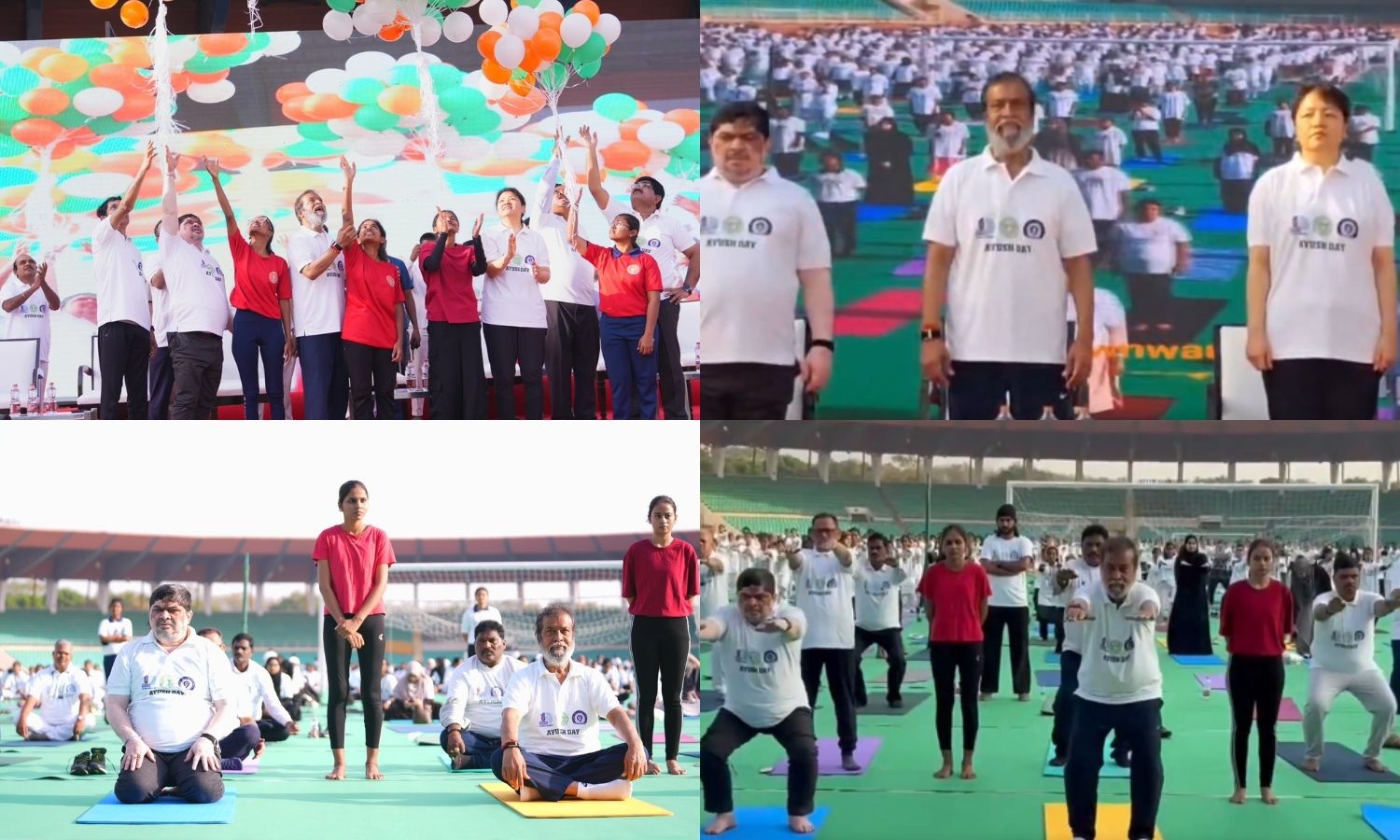 After the launch, he performed yoga along with Minister Ponnam Prabhakar and interacted with participants. The ministers also inspected stalls set up by the AYUSH department.