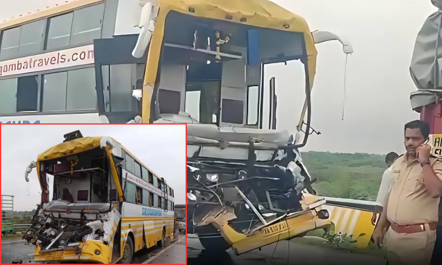 According to police and eyewitnesses, the Durga Travels Volvo bus, belonging to Shivamogga in Karnataka, was en route to Hyderabad carrying 29 passengers. Around 5 am, while passing through the outskirts of Narsireddypally and Jaklair villages, the bus crashed into a lorry ahead of it. The impact was severe enough to completely wreck the front portion of the bus.