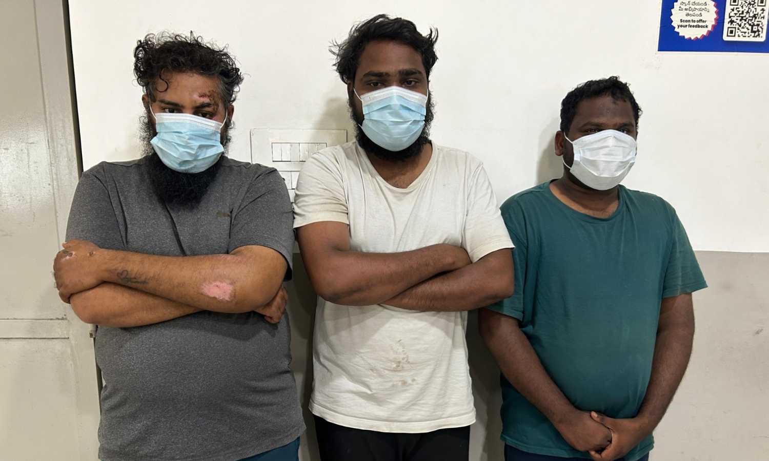 Acting on a tip-off, officials intercepted a white WagonR bearing registration number AP 39 SP 0138 and apprehended the accused Mohammad Shameerulla Baig (35), Bodugu Rajesh (26), and Sonkavalli Naresh (29) all from Rajahmundry, Andhra Pradesh.