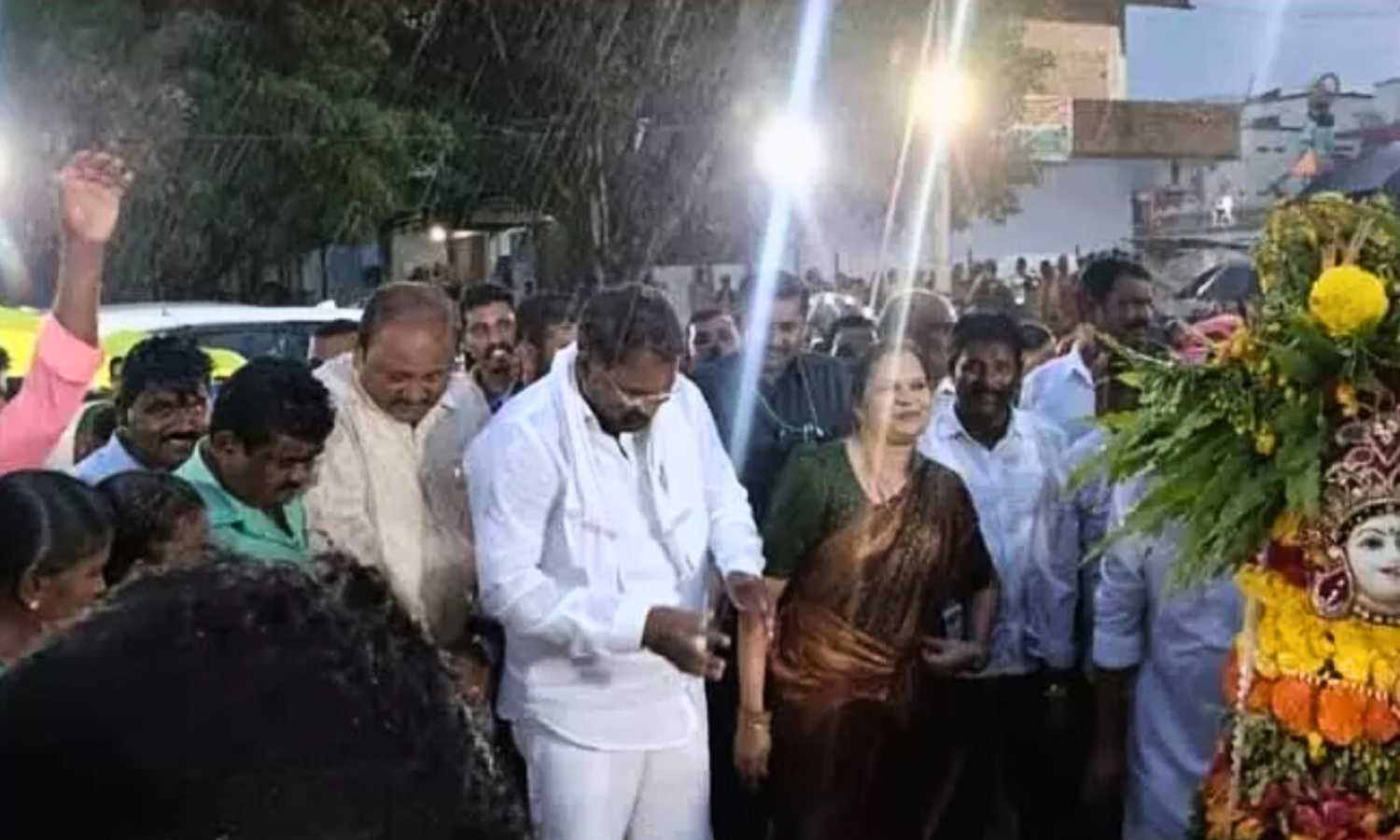 Minister V. Srinivas Goud and his wife Lalitamma joined the women in the festival. The couple danced together to folk songs, encouraging participants to celebrate with enthusiasm. Their presence in their hometown added a special note to the event.