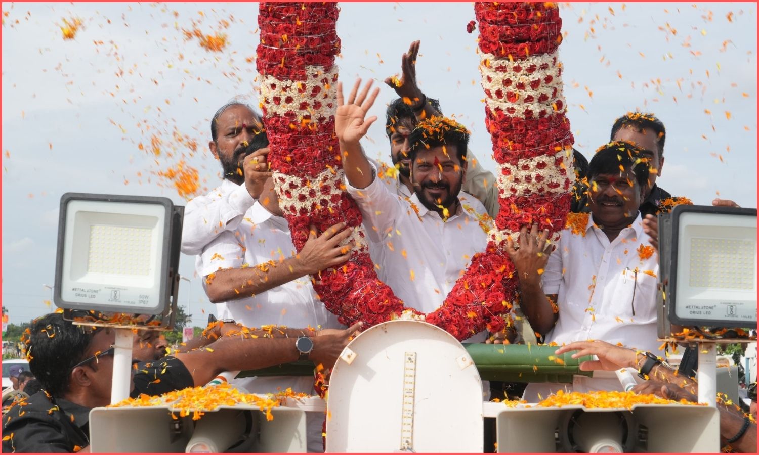 From the helipad, villagers escorted him in a rally to the Anjaneya Swamy temple, showering him with flowers and greeting him with traditional displays. Revanth Reddy performed special pujas at the temple before joining the festival programmes.