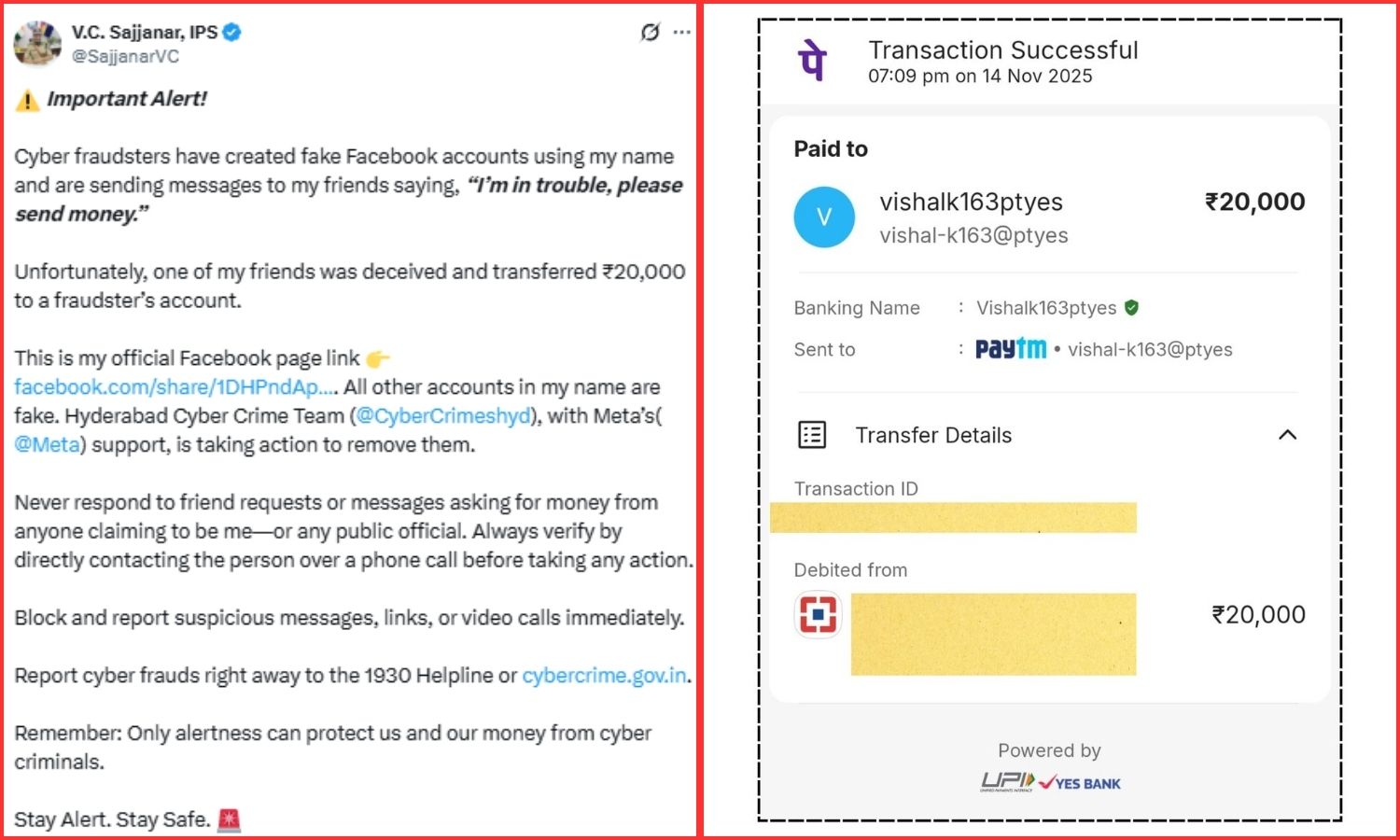 Sajjanar explained that the fake profile contacted his friends through misleading messages. Consequently, one of them believed the claim and sent money to the criminal’s account. He emphasised that his official Facebook page remained the only authentic account under his name. Additionally, he urged people to ignore every other profile.