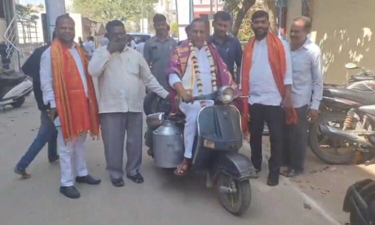 HYDERABAD: Former Telangana minister and current MLA, Malla Reddy, recently revisited his early days as a milk vendor during an event in Boduppal, Medchal district. On Sunday, while attending a local programme, Reddy spotted a scooter equipped with milk canisters and promptly seated himself on it, reminiscent of his past profession. He cheerfully posed for photographs, and videos of this nostalgic moment have since gained traction online. Observers have commented, “Are you selling milk again, Malla Reddy?”