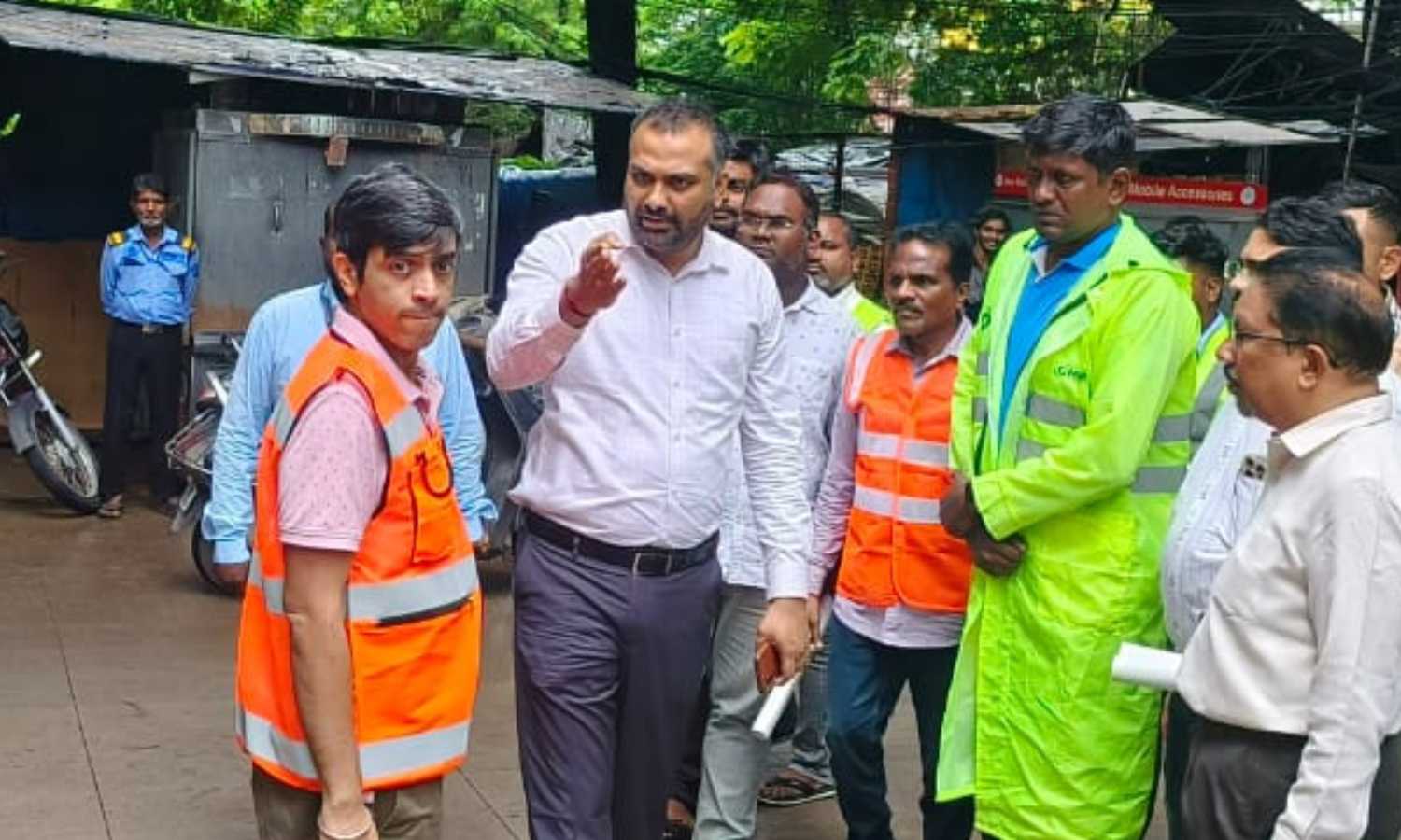 During his visit to Maitrivanam, Karnan joined Khairatabad Zonal Commissioner Anurag Jayanti, Chief Engineer Sahadev Ratnakar, and a team of consultants to review the condition of the local stormwater drain. They found serious blockages disrupting the flow of water and discussed steps to fix the problem quickly.