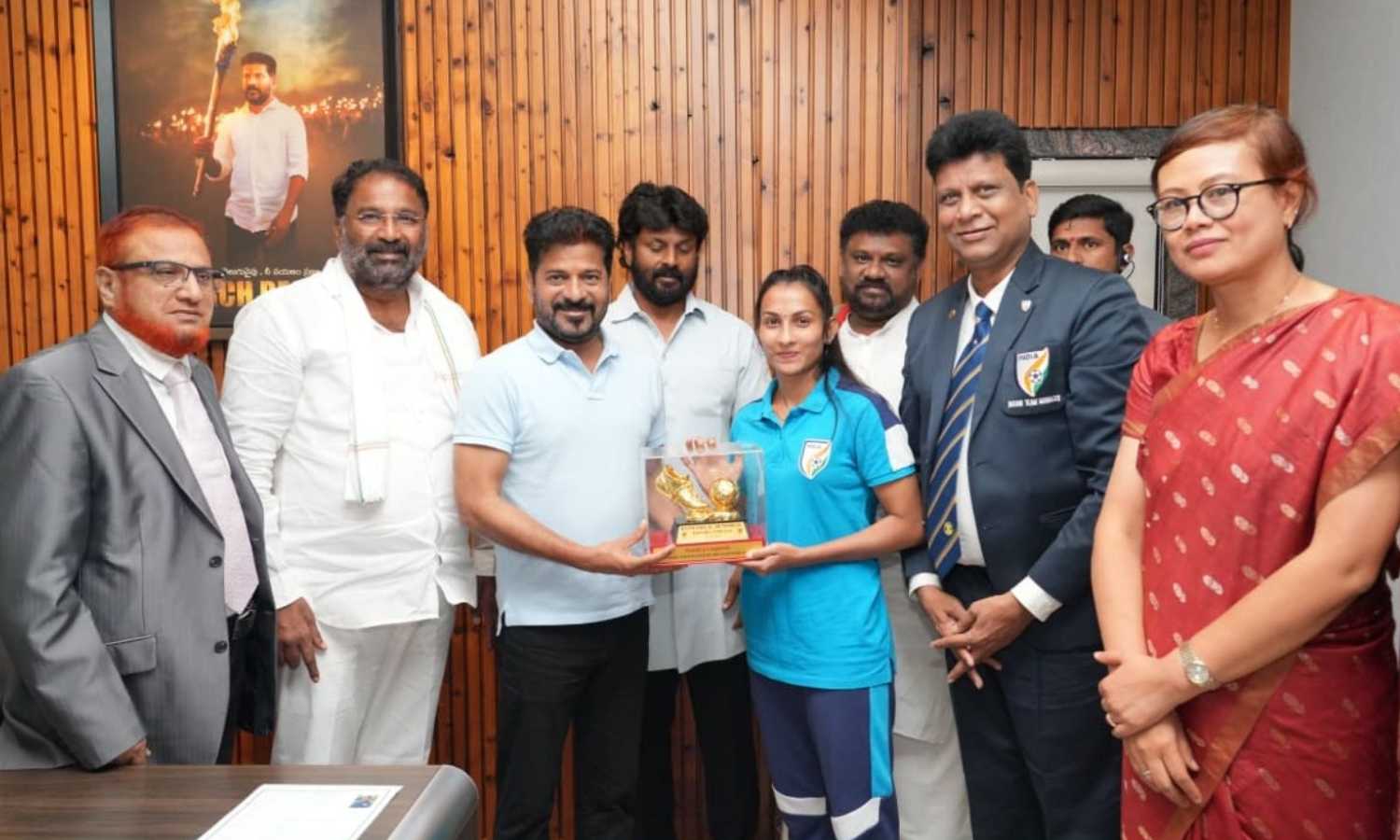 Soumya recently won the Best Player Award from the All India Football Federation (AIFF). She met the chief minister at his Jubilee Hills residence, where he personally congratulated her on the achievement.